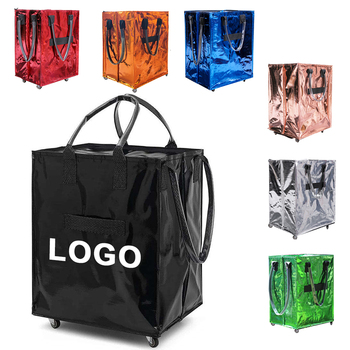 カスタムロゴショッピングバッグ折りたたみ式ホイール耐久性のある広々としたポータブル食料品バッグショッピングトロリーローリングハンドバッグカスタマイズ可能